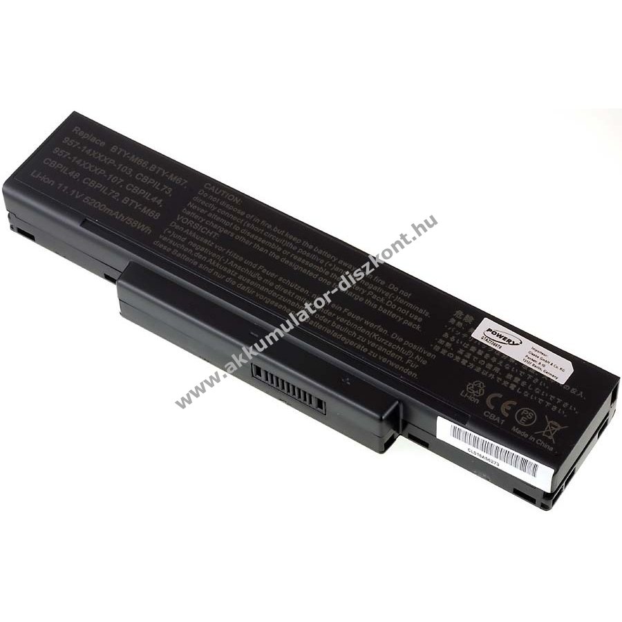 11,1V 5200mAh/57,7Wh Li-Ion fekete 204,7mm x 49mm x 19,9mm Powery