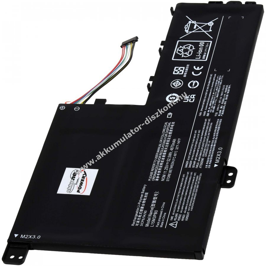 11,25V 4670mAh/52,5Wh Li-Polymer fekete 221mm x 125mm x 6mm Powery