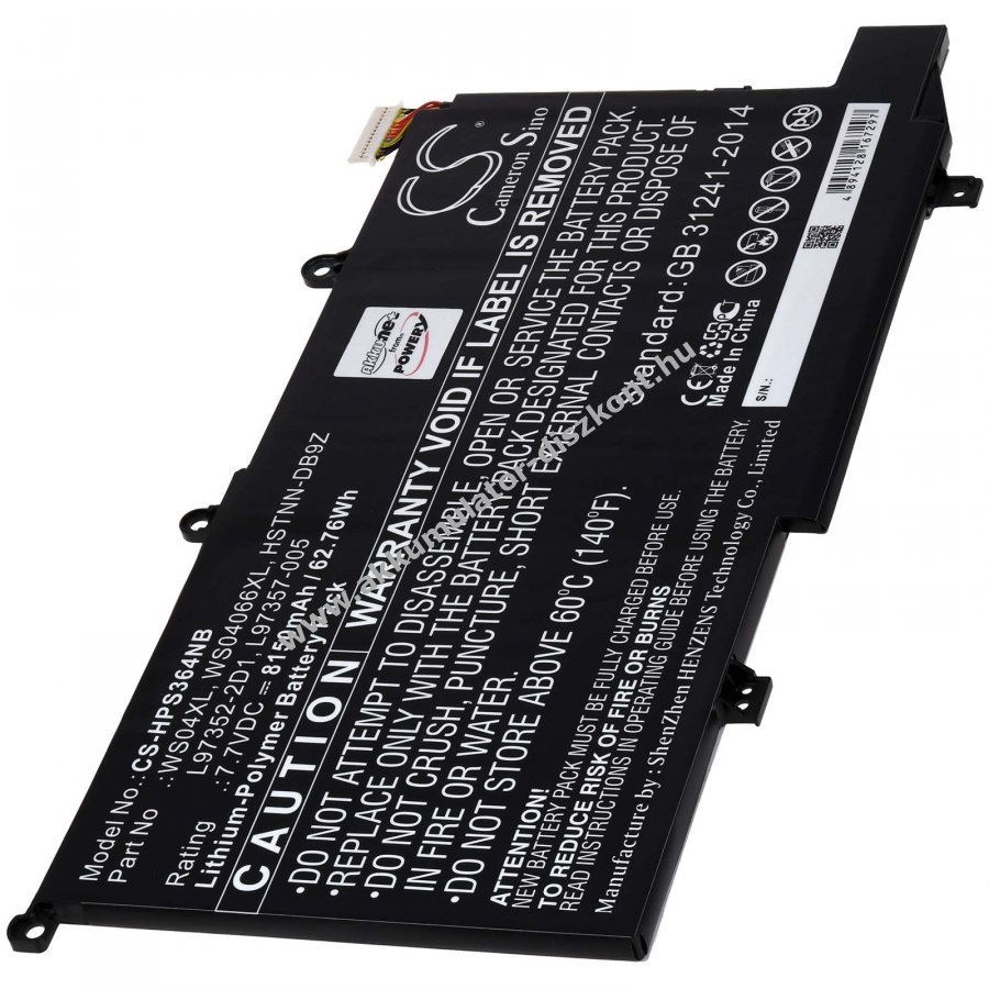 7,7V 8150mAh/63Wh Li-Polymer fekete 250mm x 129mm x 5,5mm Powery
