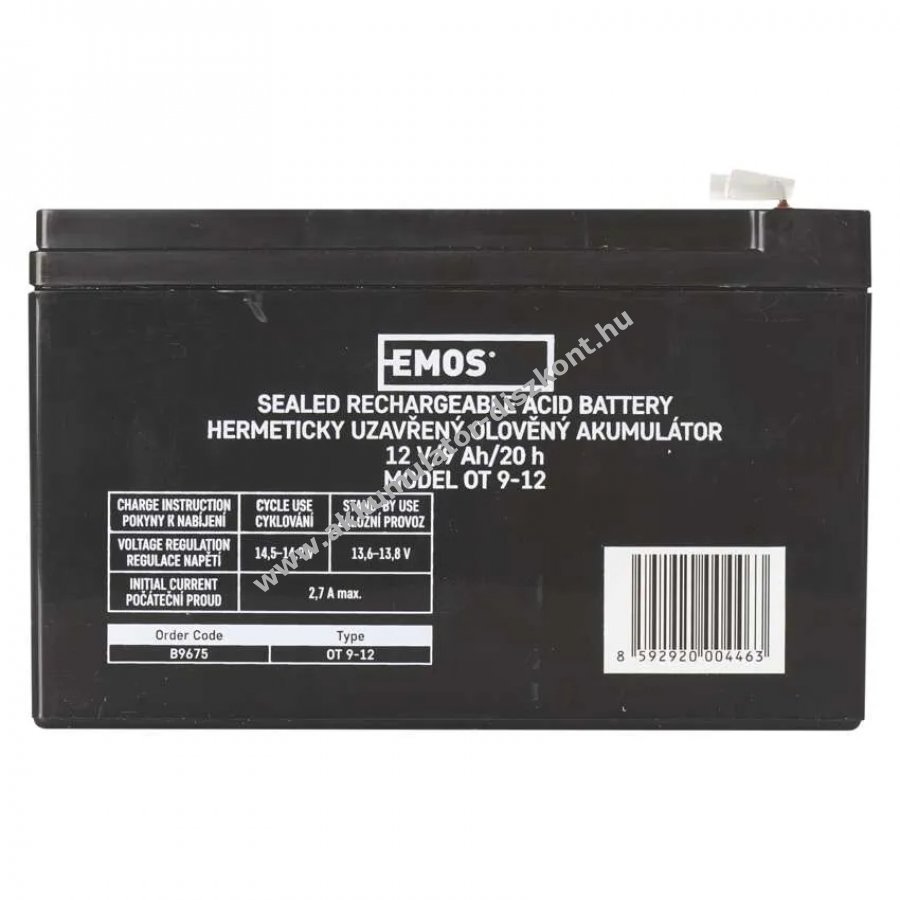 12V 9Ah SLA fekete 151mm x 65mm x 94mm EMOS