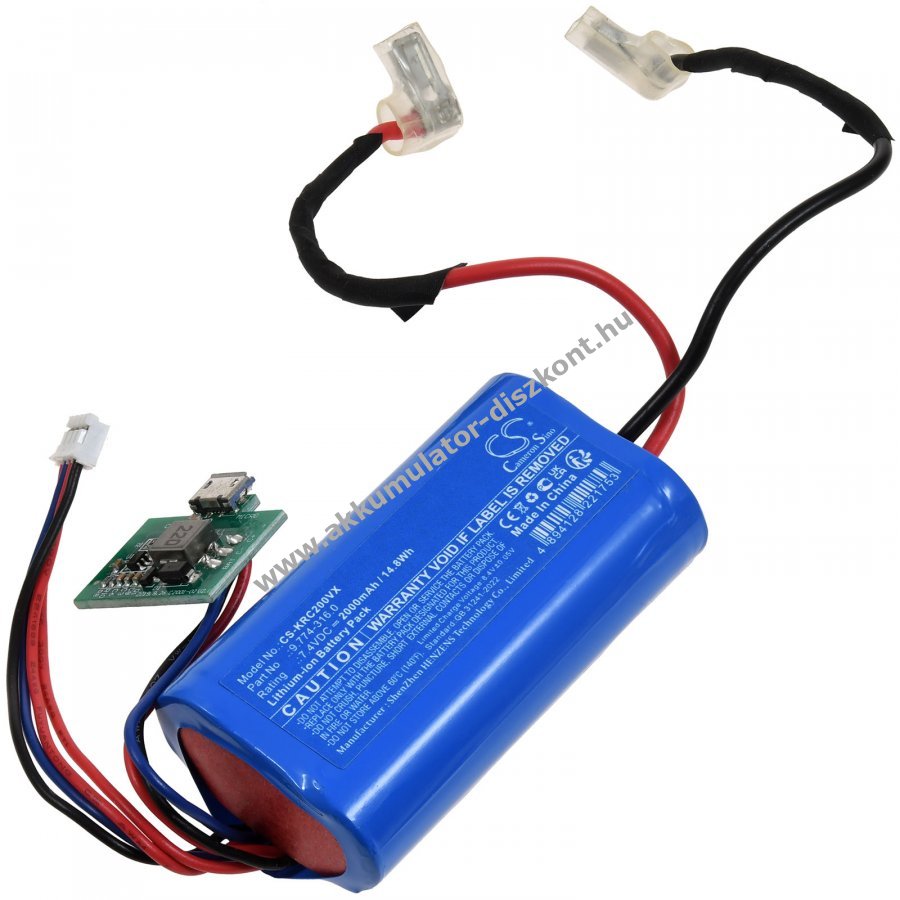 7,4V 2000mAh/15Wh Li-Ion fekete 69mm x 37mm x 24mm Powery
