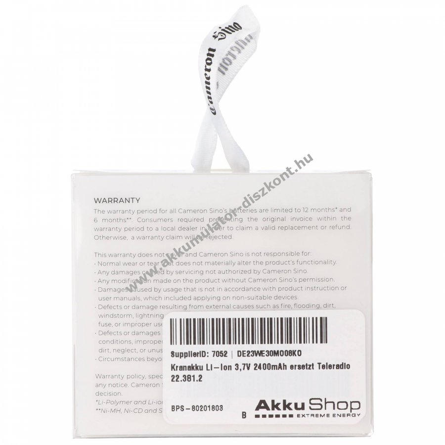 Ez a Teleradio készülékhez gyártott akkumulátor kiváló minőségű| és ideális választás hibás vagy régi akkumulátor cseréjéhez| illetve további pótakkumulátorként útközben. A védőelektronika és a kiváló minőségű alkatrészek használata magas szintű biztonságot nyújt mind a túltöltés| mind a rövidzárlat ellen. Ennek köszönhetően az akkumulátor több töltési és kisütési ciklust képes elérni| ami hosszabb élettartamot biztosít. Használata és töltése egyszerű| a szokásos töltőn vagy tápegységen keresztül. Akkumulátoraink kizárólag új| minőségi márkás cellákból készülnek.