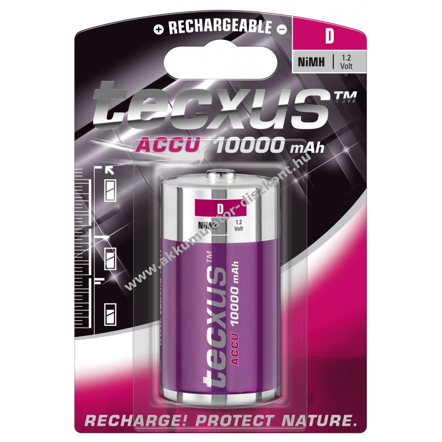 Tölthető D (góliát) méretű Tecxus HR20 NiMH akkumulátor nagy, 10000mAh kapacitással és 1,2V feszültséggel, 1db/csomag csomagolásban.
