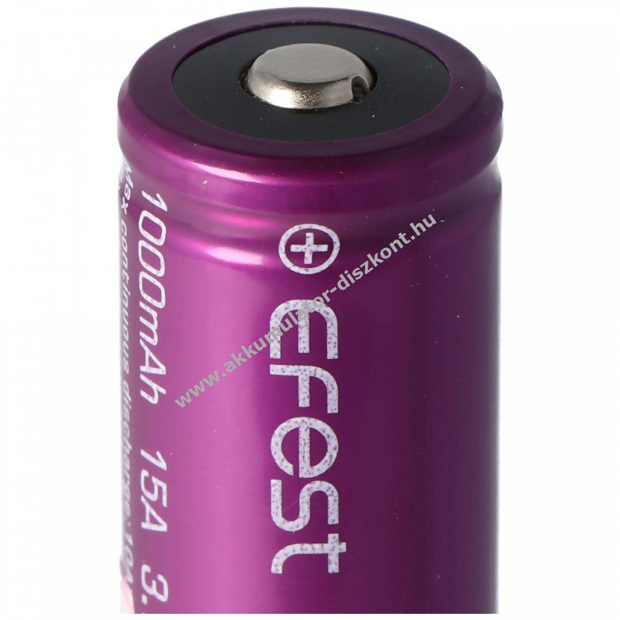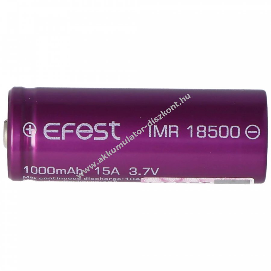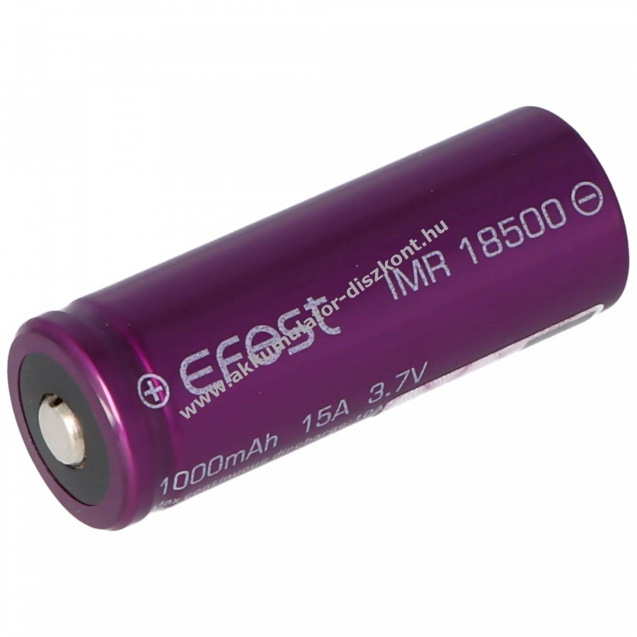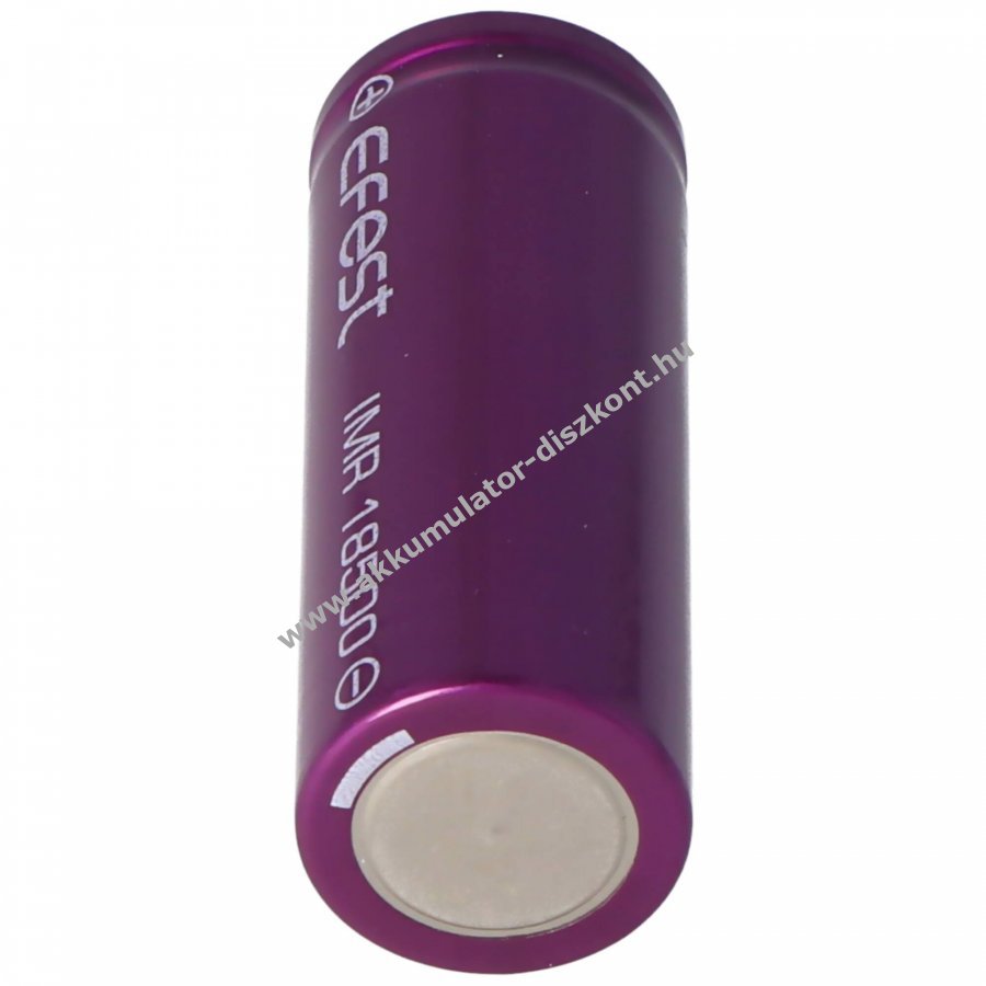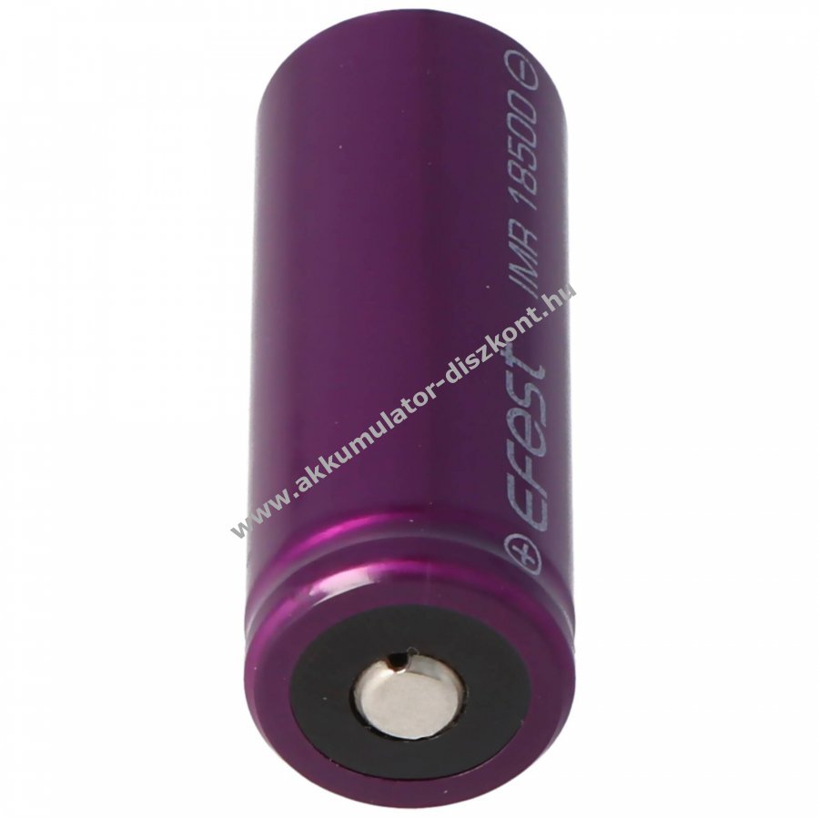 Efest Purple IMR18500 nagyáramú, termikusan stabil lítium-mangán (IMR) cella, kifejezetten akkumulátortartókhoz és zseblámpákhoz emelt pluszpólusú, védőáramkör nélküli kivitel.