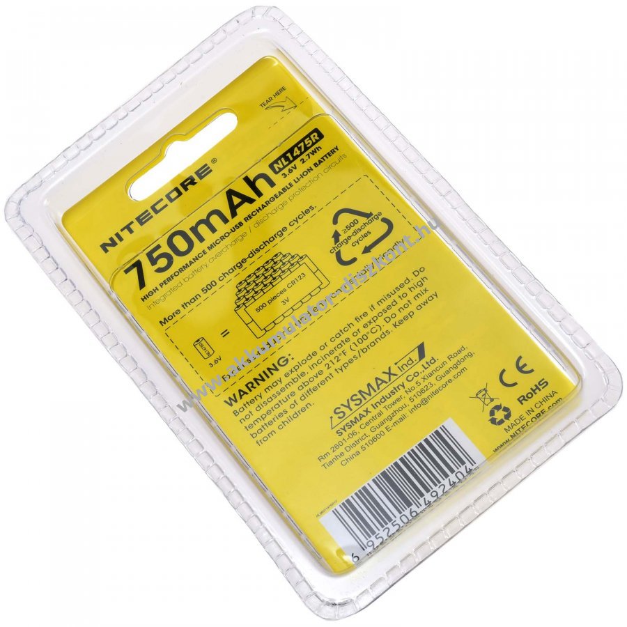 3,7V 750mAh/2,8Wh Li-Ion fekete 49mm x 14mm Nitecore