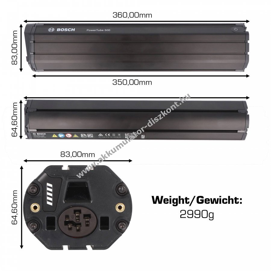 Bosch Powertube 500 horizontális e-bike Akkumulátor 36V, 13.4Ah/500Wh