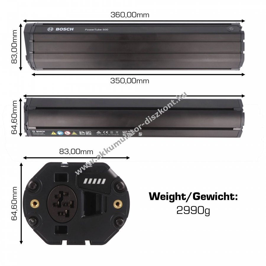 Bosch Powertube 500 vertikális e-bike Akkumulátor 36V, 13,4Ah/500Wh