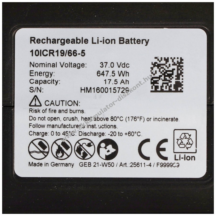 36V 17500mAh/630.0Wh Li-Ion fekete 370mm x 157mm x 81mm