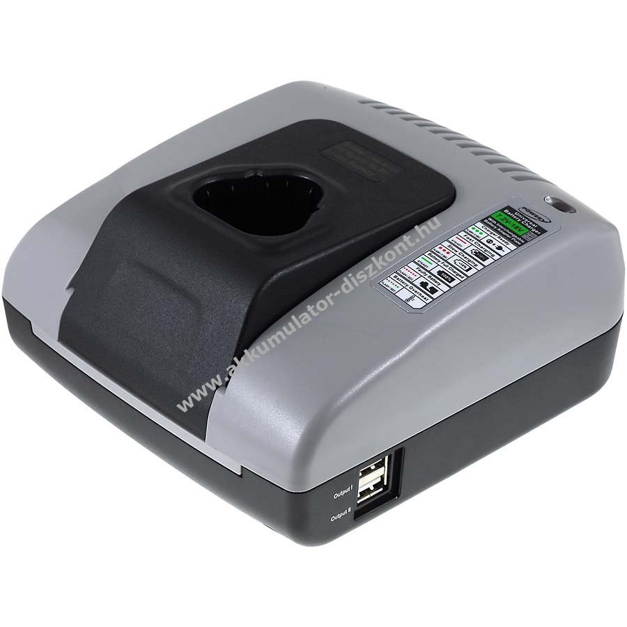 Gyorstöltő asztali töltő Ryobi NiCd és NiMH szerszámakkukhoz 10,8V-tal Műszaki adatok: Bemeneti feszültség: 100-240V Kimeneti feszültség: 10,8V (automatikusan szabályozott) + 2x USB 5V (kimenetenként max. 2,1A) Töltőáram: 1A-ig 3A Akkutípusok: NiCd , NiMH háromfázisú töltés: 1. Előtöltés - 2. Állandó áramú gyorstöltés - 3. Csepptöltés Töltési végállás kapcsoló: - Delta U nem eredeti töltő Biztonsági jellemzők: Túlmelegedés elleni védelem Rövidzárlat védelem Fordított polaritás automatikus védelem. Töltés vég kikapcsolása Hibás akkumulátorok észlelése Szállítási terjedelem: asztali töltő, tápkábel, használati útmutató Figyelem ez egy gépi fordítás, amennyiben hibát talál kérjük jelezze felénk.