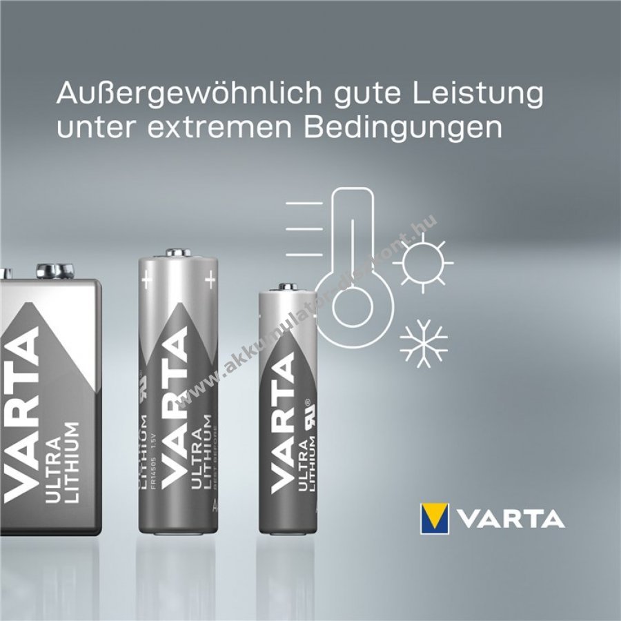 A Varta lítium 9 V blokk elem megbízható energiaforrást biztosít elektronikus kis készülékekhez. Kiváló minőség és hosszú élettartam jellemzi. Különösen alkalmas sport- és kempingeszközökhöz mivel akár 38%-kal könnyebb az alkáli elemeknél. 9 V feszültsége miatt energiaigényes digitális fényképezőgépekhez GPS készülékekhez és füstérzékelőkhöz ideális.