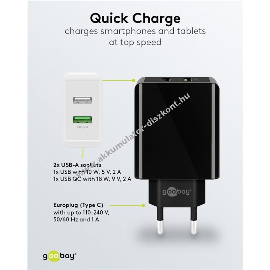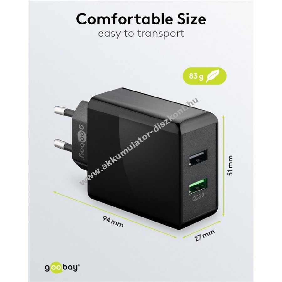 Qualcomm Snapdragon processzorokkal rendelkező készülékekhez optimális töltési áram az olyan készülékek számára, amelyek megfelelnek a QC 3.0 szabványnak túlterhelés és rövidzárlat védelem 100 V - 240 V azt jelenti, hogy külföldön is felhasználható