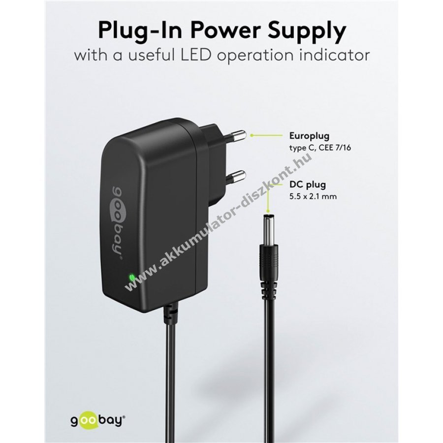 Goobay 12V tápegység 7,2W 0,6A DC csatlakozó 5,5x2,1mm