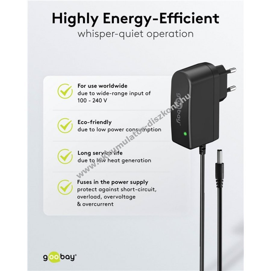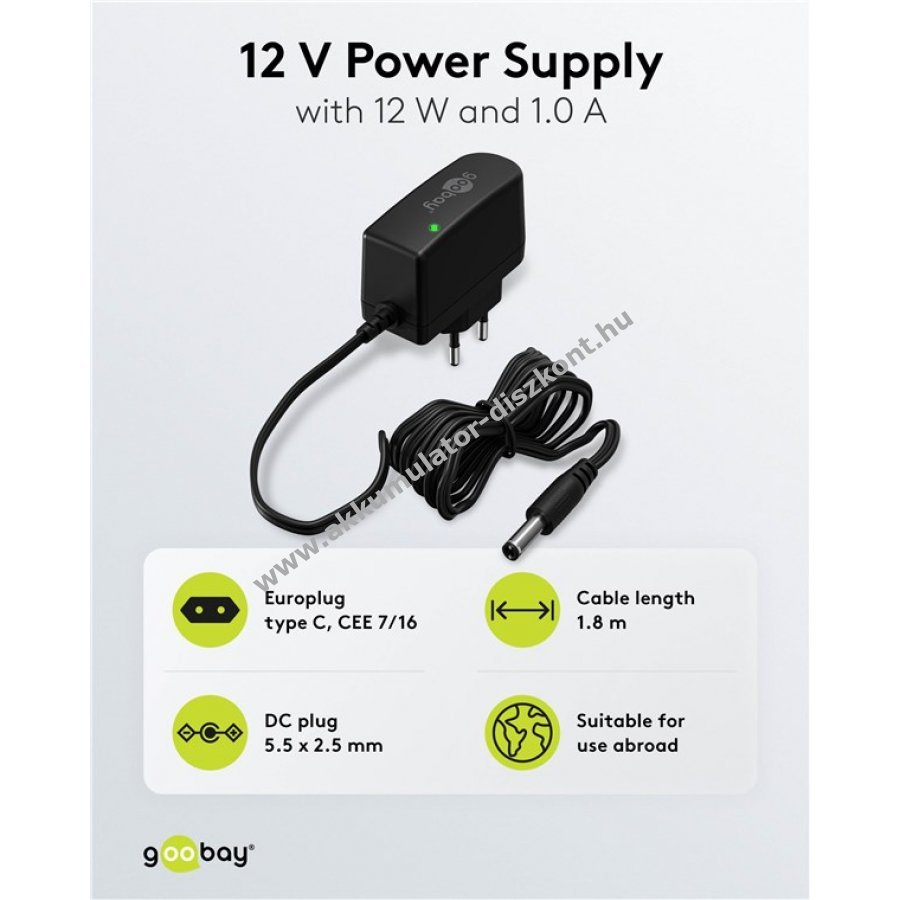 12V 1A fekete 69 x 28 x 75 mm Goobay