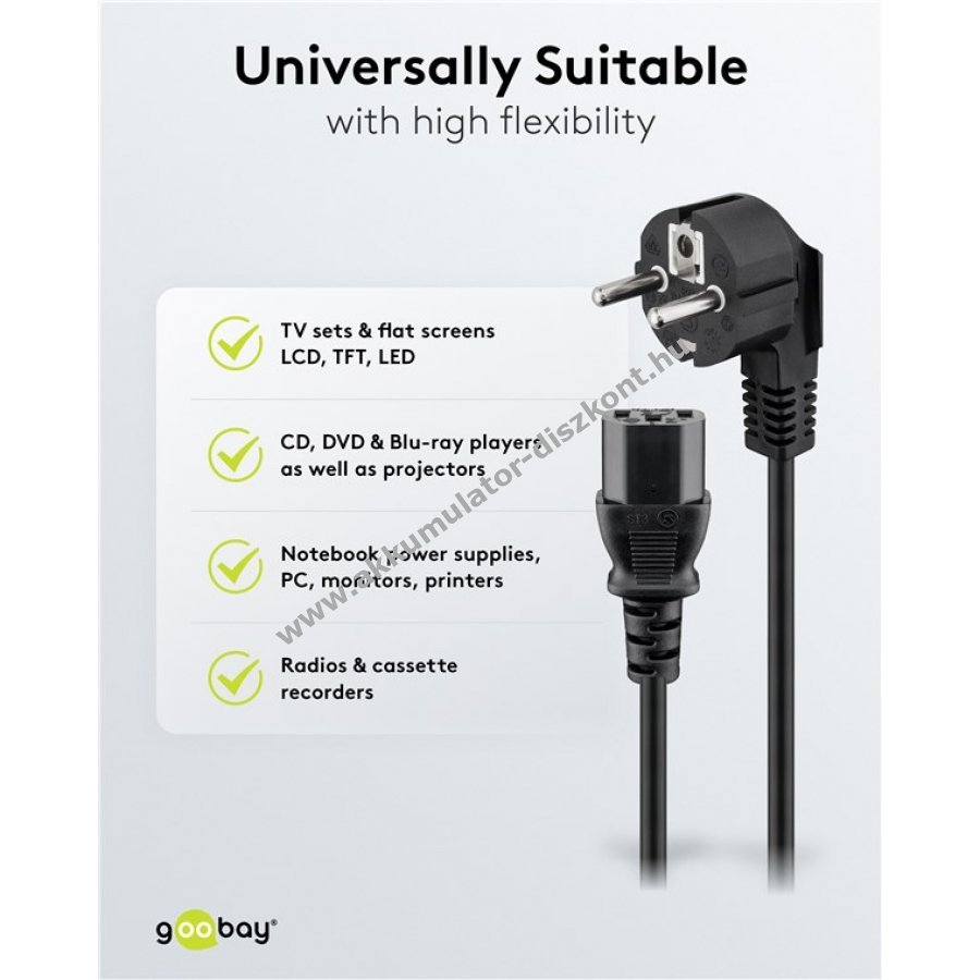 Univerzálisan használható hálózati kábel szögletes csatlakozóval a helytakarékos elhelyezéshez