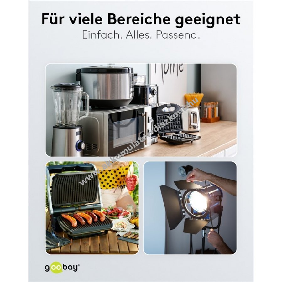 Univerzális hálózati kábel melegítő készülékhez fém érintkezős csatlakozóval és védőérintkezős dugóval. Alkalmas melegentartó lapokhoz, asztali grillekhez, vasalókhoz, gofrisütőkhöz és egyéb C16 csatlakozóval rendelkező készülékekhez. Ideális használt melegítő készülék kábel cseréjéhez.
