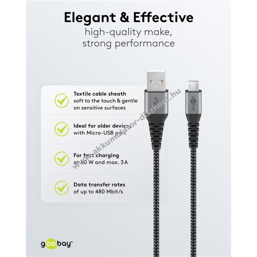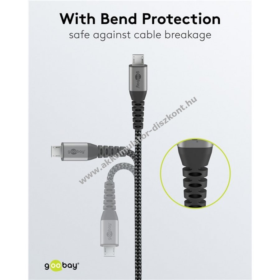 Goobay Micro USB kábel szövetborításal, szürke, 50cm