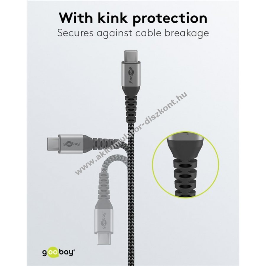 Goobay USB-C kábel, szövetborítás, 1m , szürke 60W