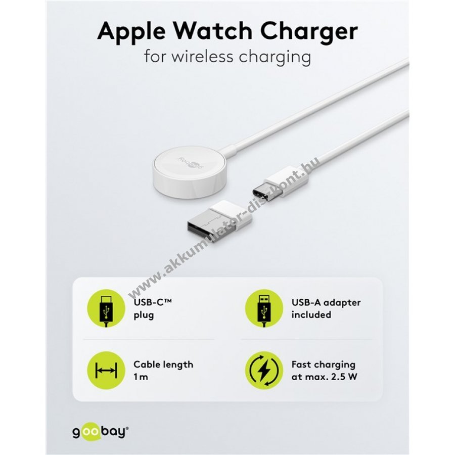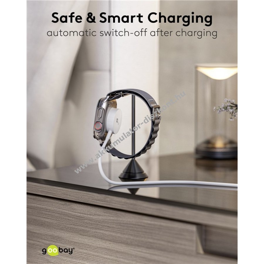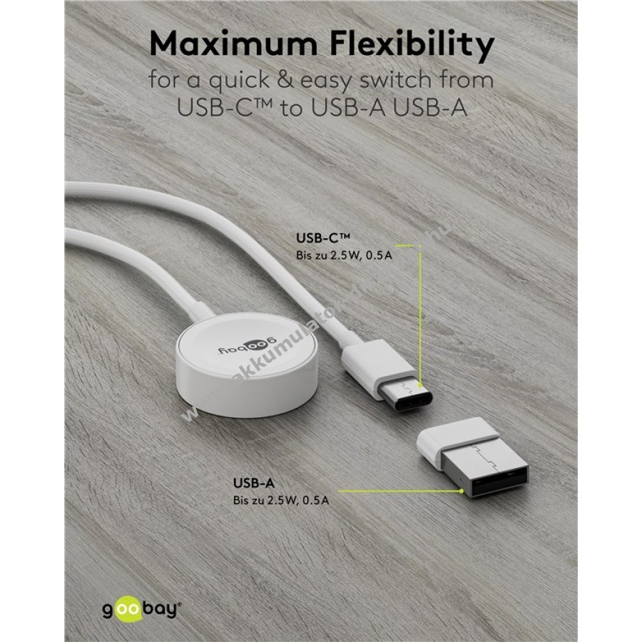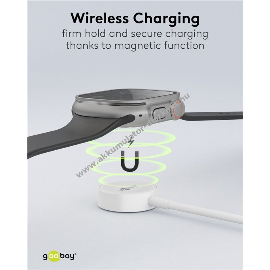 A mágneses technológia biztosítja, hogy az óra szilárdan rögzüljön a töltőállomáson, és megakadályozza, hogy a töltési folyamat során elcsússzon Különösen egyszerű használat: az Apple Watch automatikusan töltési üzemmódba kapcsol, ha dokkolva van Amint az óra teljesen feltöltődött, a töltő automatikusan kikapcsol, és megvédi az okosórát a túltöltéstől Kompakt méretének köszönhetően az induktív töltőállomás tökéletes társ utazáskor és útközben is A töltőkábel hossza 1m, USB-adapterrel együtt, amely USB-C vagy USB-A áramforráson keresztül történő töltéshez is használható.