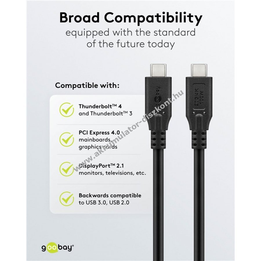 Az USB-kábel támogatja az ultra-magas felbontást, akár 4K 60Hz, a kristálytiszta, magával ragadó videóélményért. Az akár 20 Gbit/s sebességű adatátvitel villámgyors adatátvitelt biztosít - így az USB-C kábel 4x gyorsabb, mint az USB 3.0, és tökéletes a HD filmek, sorozatok, zenék és fényképek számára. A Power Delivery (SPR) által lehetővé tett 100W a nagy teljesítményű laptopok, dokkolók és más energiaigényes eszközök kulcsfontosságú tápegységévé teszi az USB-kábelt Támogatja a HDR10-et, és tökéletesen alkalmas HD-videók külső monitorokra, TV-kre vagy projektorokra történő streameléséhez, pl. okostelefonokról, notebookokról, táblagépekről és más gazdatestekről. Az eddigi legrugalmasabb USB-kábel: Lehetővé teszi az adatalagutat a DisplayPort 2.1 és a PCIe 4.0 portokról, és közvetlenül csatlakoztatható a Thunderbolt 4 vagy Thunderbolt 3 portokhoz. Támogatja az USB-C portokat DisplayPort Alt móddal a nagyfelbontású videóátvitelhez, és visszafelé kompatibilis az USB 3.2, 3.1 és 3.0 (USB-C) szabványokkal.