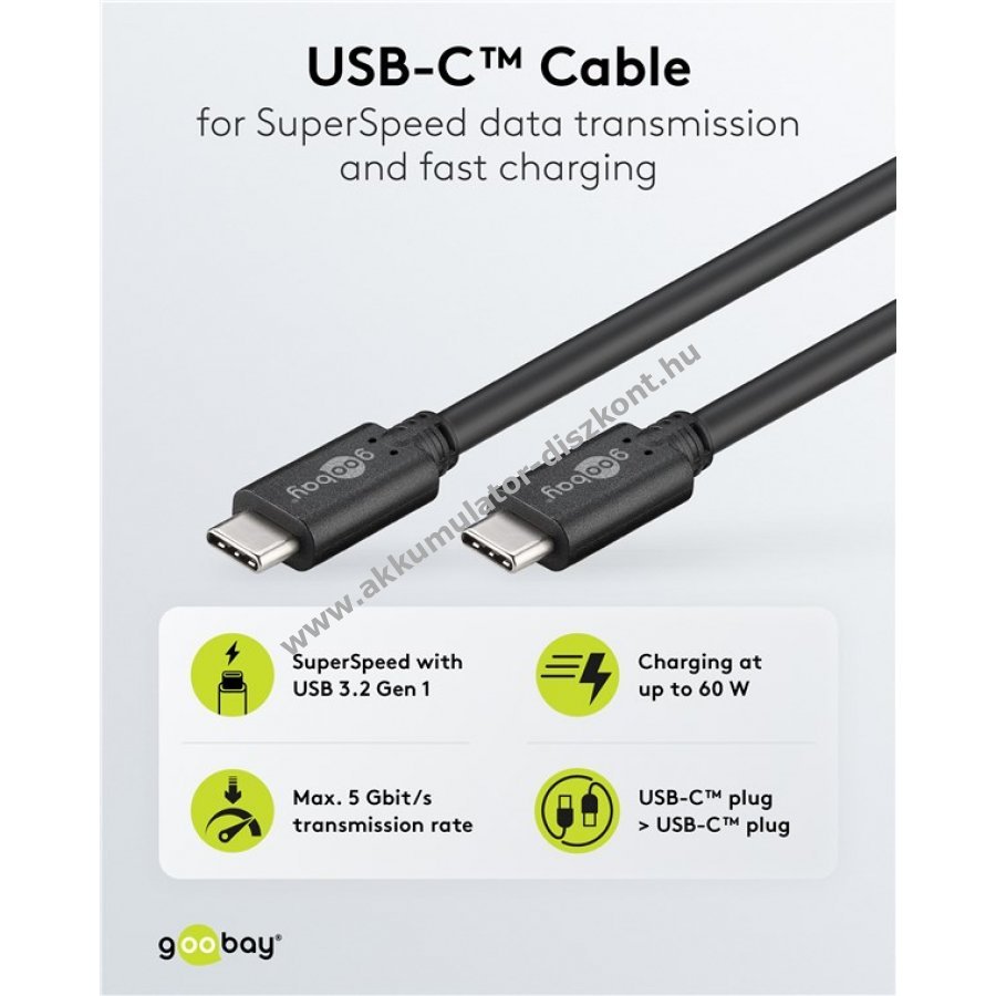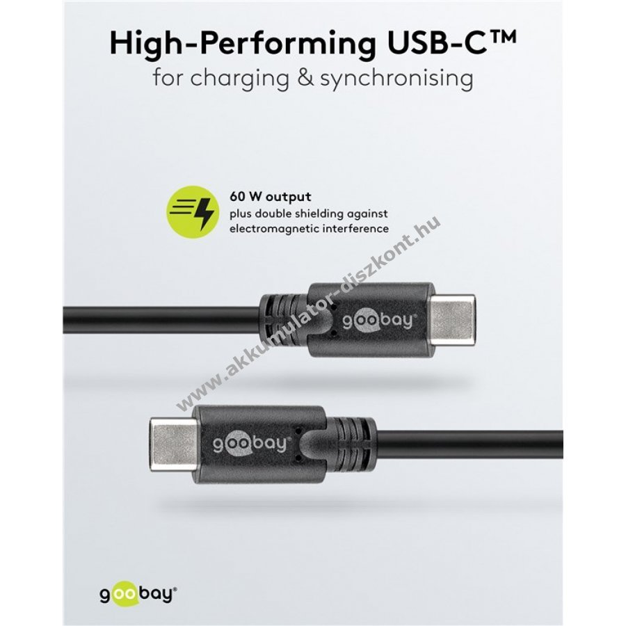 2A USB 3.1 C -> USB 3.1 C fekete 0.5m Goobay