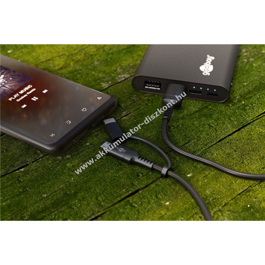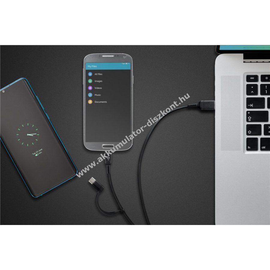 2in1 USB kábel Micro-B és USB-C csatlakozókkal együtt 1m, töltéshez és adatátvitelhez, akár 2100mAh kimeneti Töltőáramot is támogat, Hi-Speed adatátvitel 480 Mbits,s