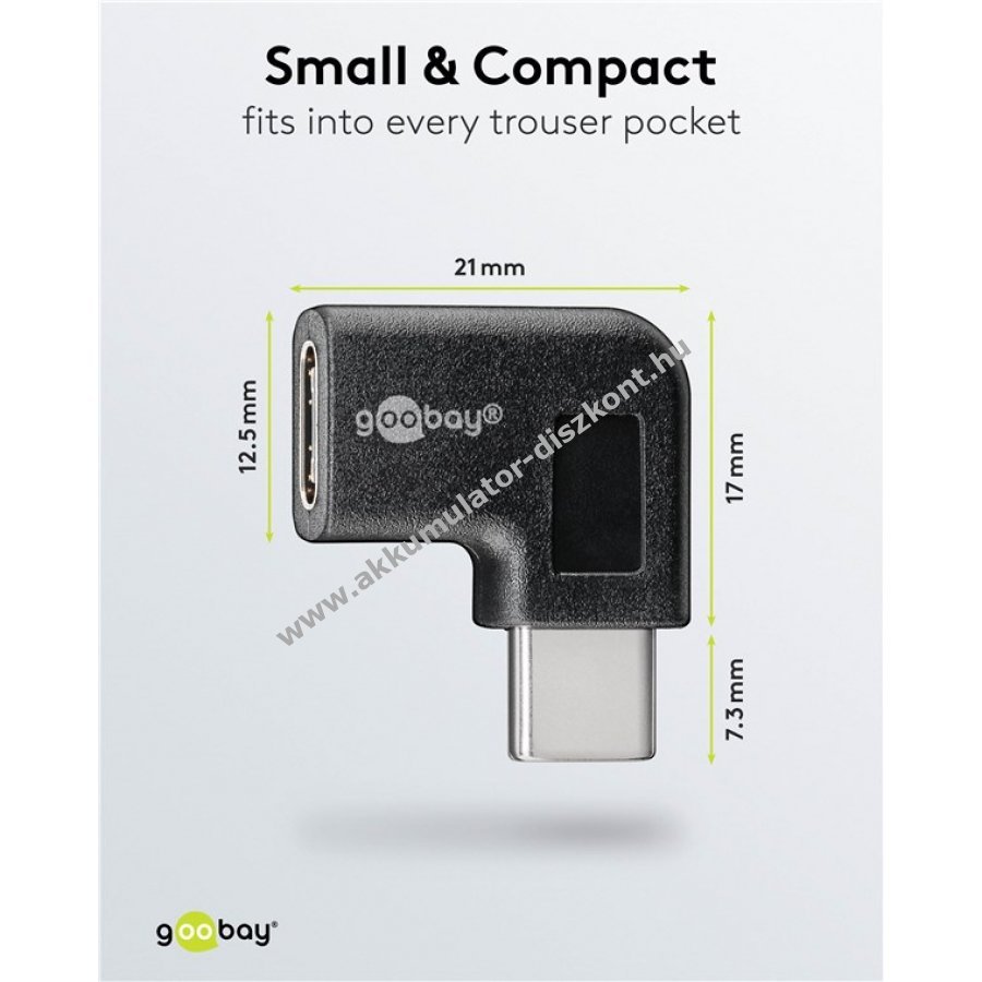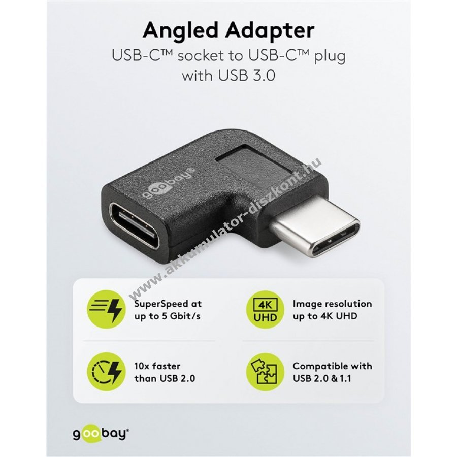 Goobay adapter USB C > USB C 90 fokos csatlakozó fekete