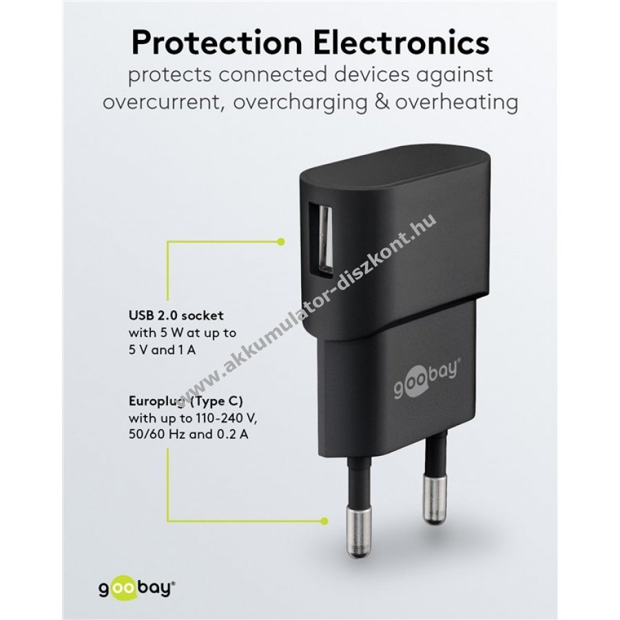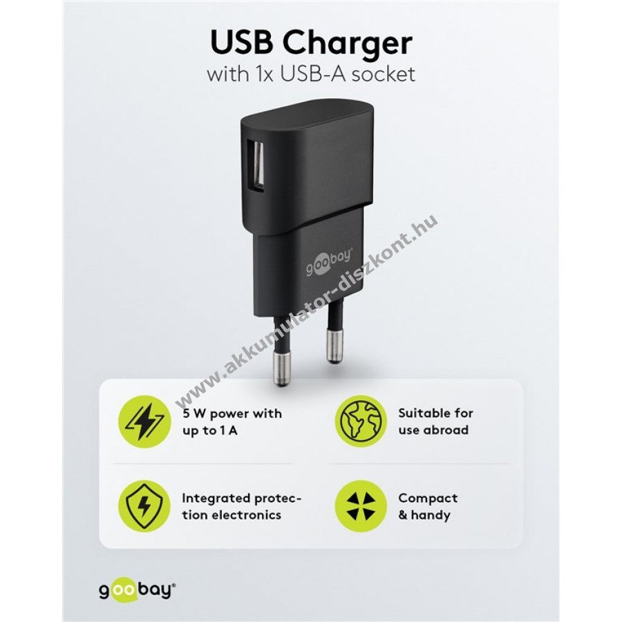 5V 1A USB fekete 67 x 38 x 19 mm Goobay