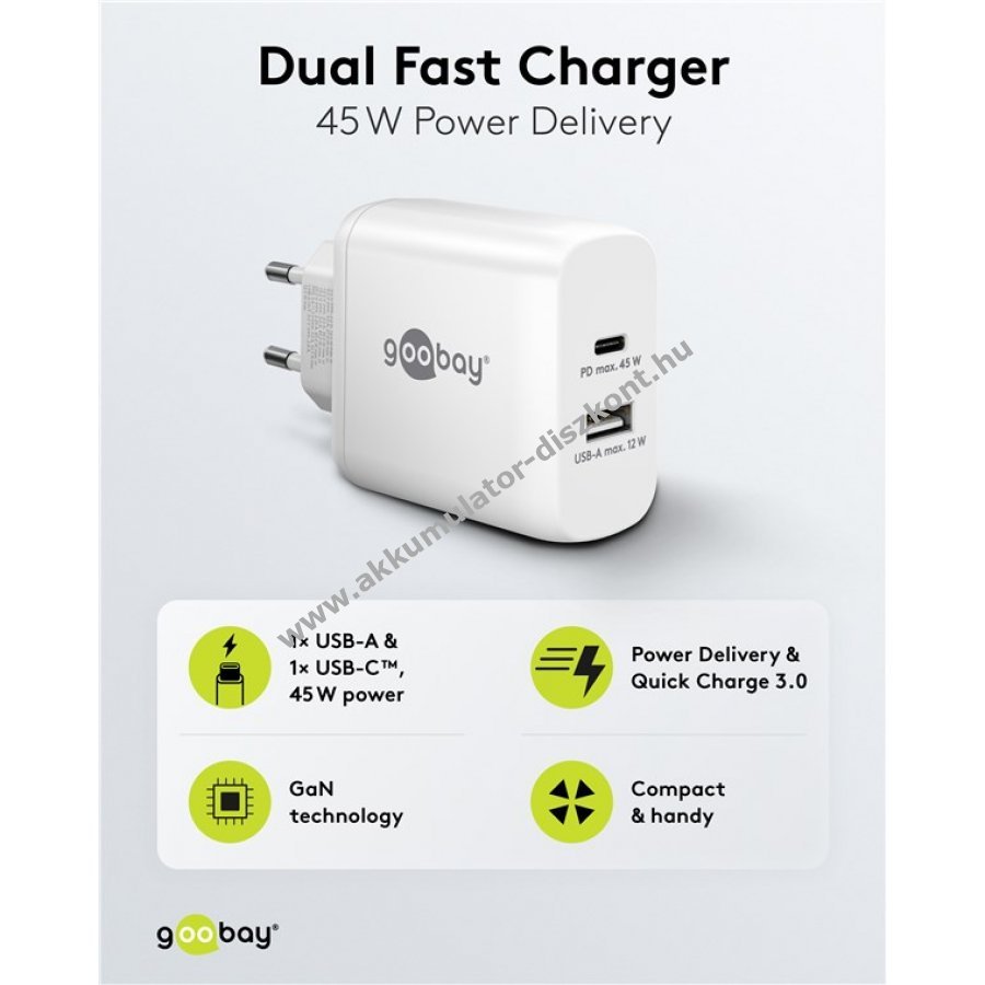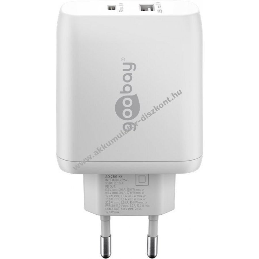 5V 3A/45W fehér 96,3mm x 56,1mm x 30,2mm Goobay
