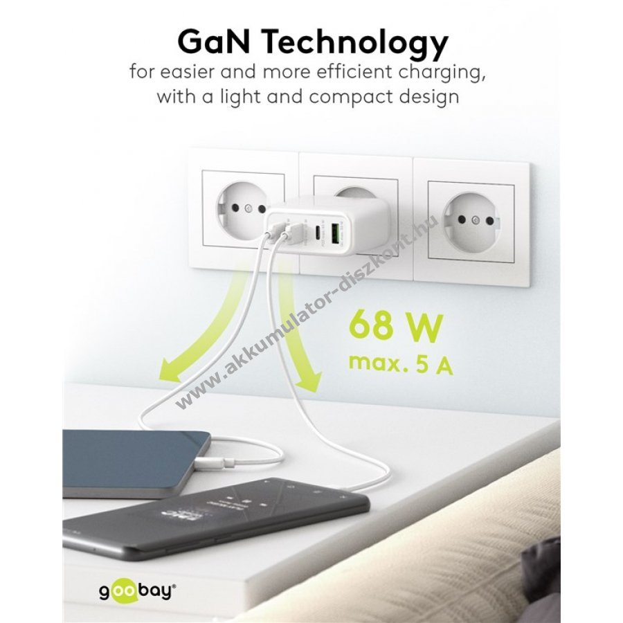 A 68 W-os, akár 3 A teljesítményű, nagy teljesítményű kimeneti teljesítménynek és a sokoldalú USB-C csatlakozóknak köszönhetően a töltőadapter szinte bármilyen eszközhöz használható - az okostelefonoktól a nagy teljesítményű notebookokig. A gyorstöltési üzemmód USB-C Power Delivery segítségével olyan laptopokat, mint például a MacBook, táplál, és egyidejűleg nagy sebességgel tölti az okostelefonokat USB-A Quick Charge-on keresztül A GaN technológiával készült félvezetők gyorsabb és hatékonyabb töltést, valamint a hagyományos töltőkhöz képest könnyebb és kompaktabb kialakítást tesznek lehetővé Helytakarékos, könnyű és rugalmas - a nagyvonalú négy porttal rendelkező USB-töltő négy különálló töltőt helyettesít az USB-A és USB-C portokkal. A kompakt, könnyű kialakításnak köszönhetően az USB-C töltő praktikus töltési megoldás akár négy eszköz egyidejű töltéséhez - otthon és útközben is A fali töltő kompatibilis az olyan okostelefon-márkákkal, mint az Apple, Samsung, Xiaomi, LG, Huawei, valamint az olyan táblagépekkel, mint az Apple iPad vagy a népszerű gyártók, például az Acer, HP, Fujitsu és Razer A széles, 110-240 V-os bemeneti feszültségtartománynak köszönhetően az USB-C tápegység nemzetközi használatra is alkalmas.