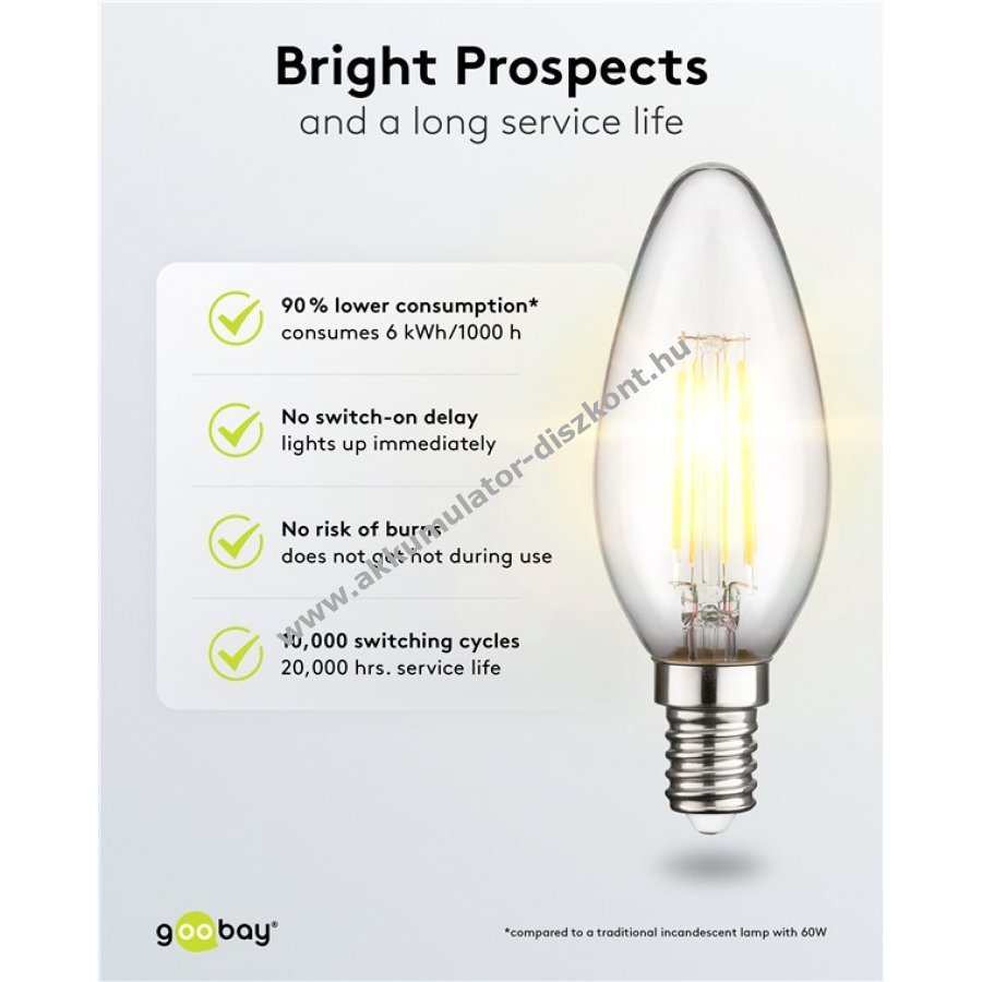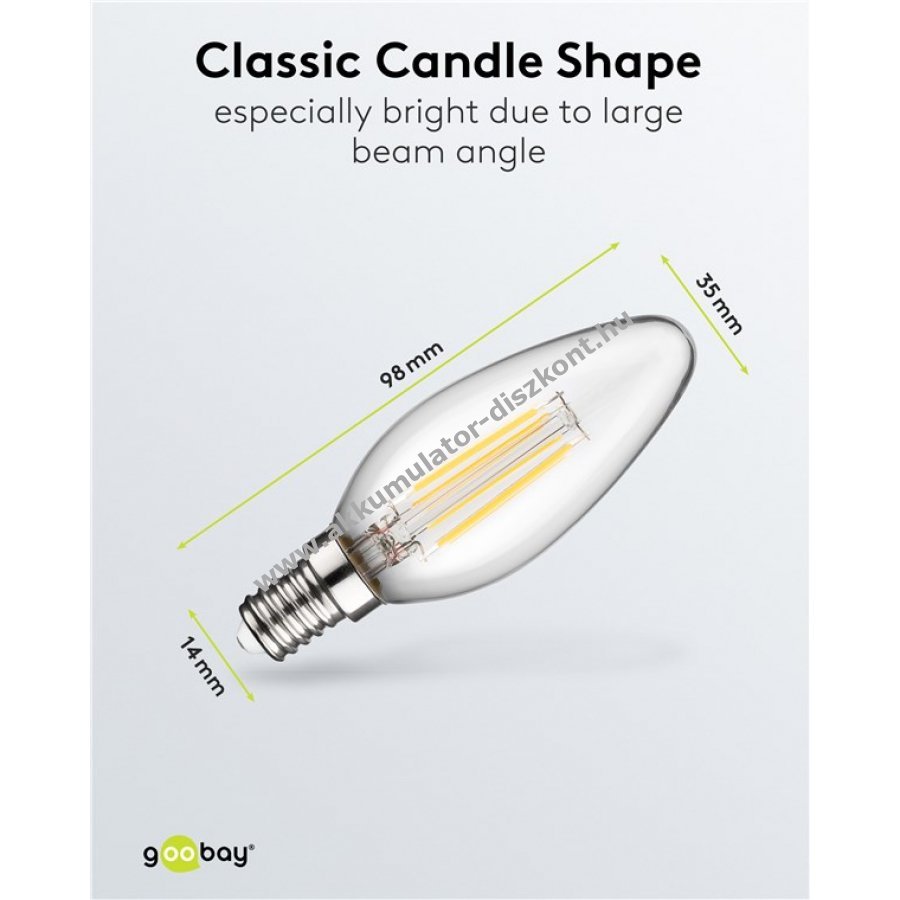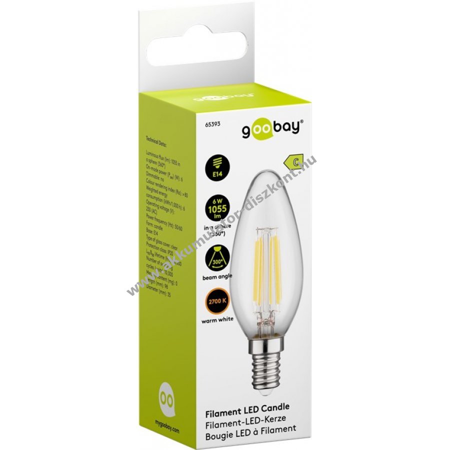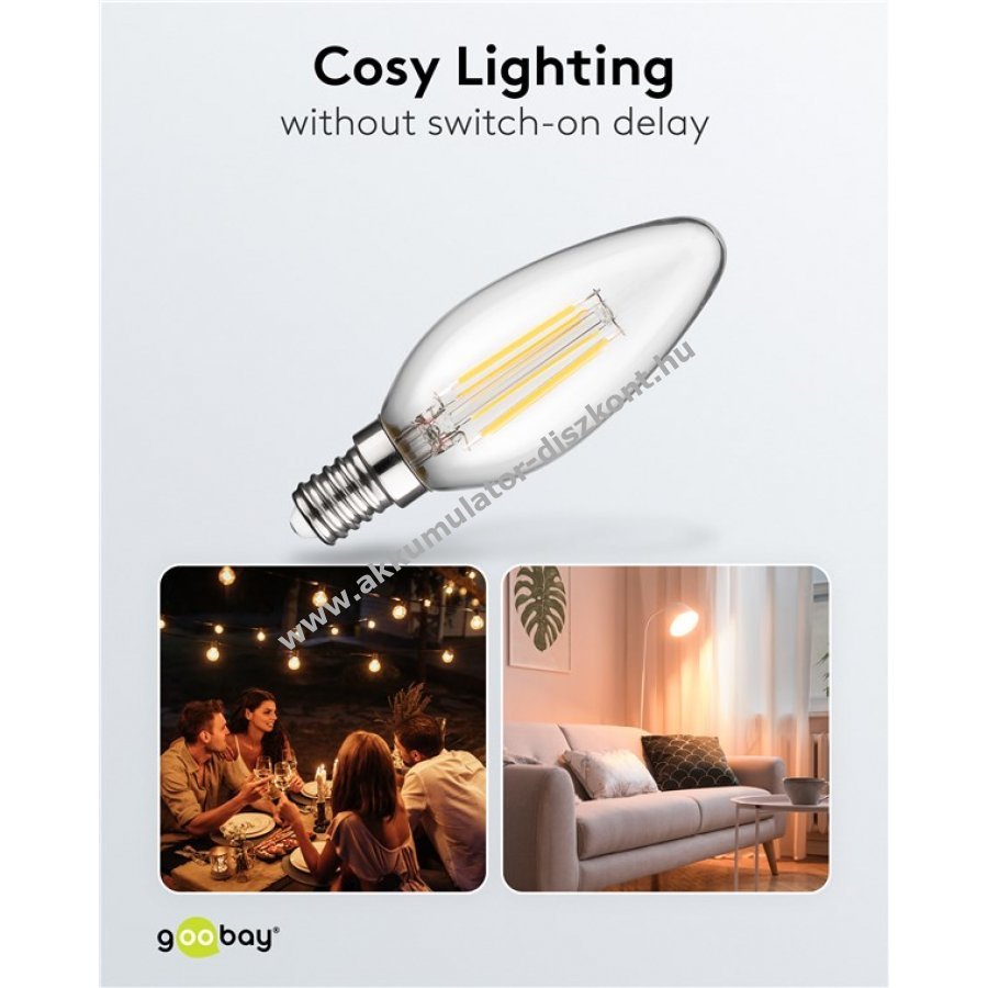 Goobay filament LED gyertya E14 foglalat 6W melegfehér