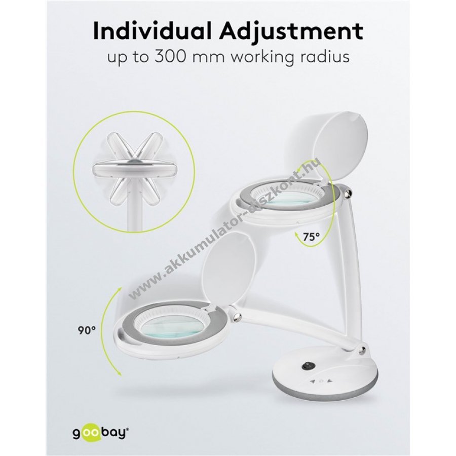 A nagyítólámpa feje 90°-ban dönthető és 75°-ban forgatható