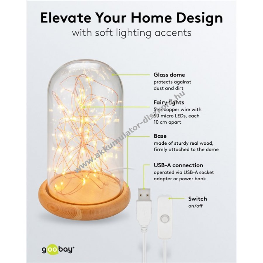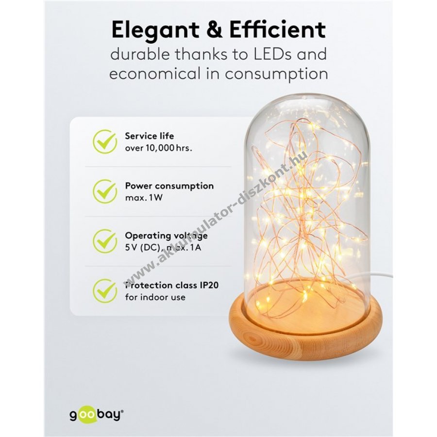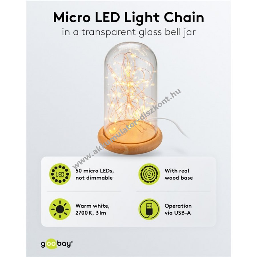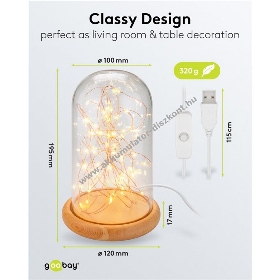 Goobay üvegharang LED mikro fényfüzérrel fa talppal USB kábellel