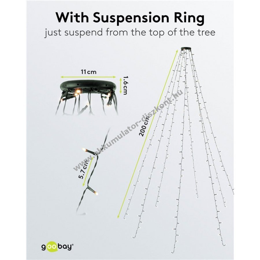 LED fényfüzér karikával 1,60-2,40 m-es karácsonyfa díszítéséhez