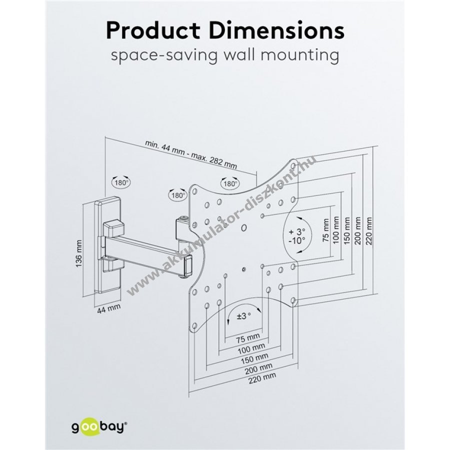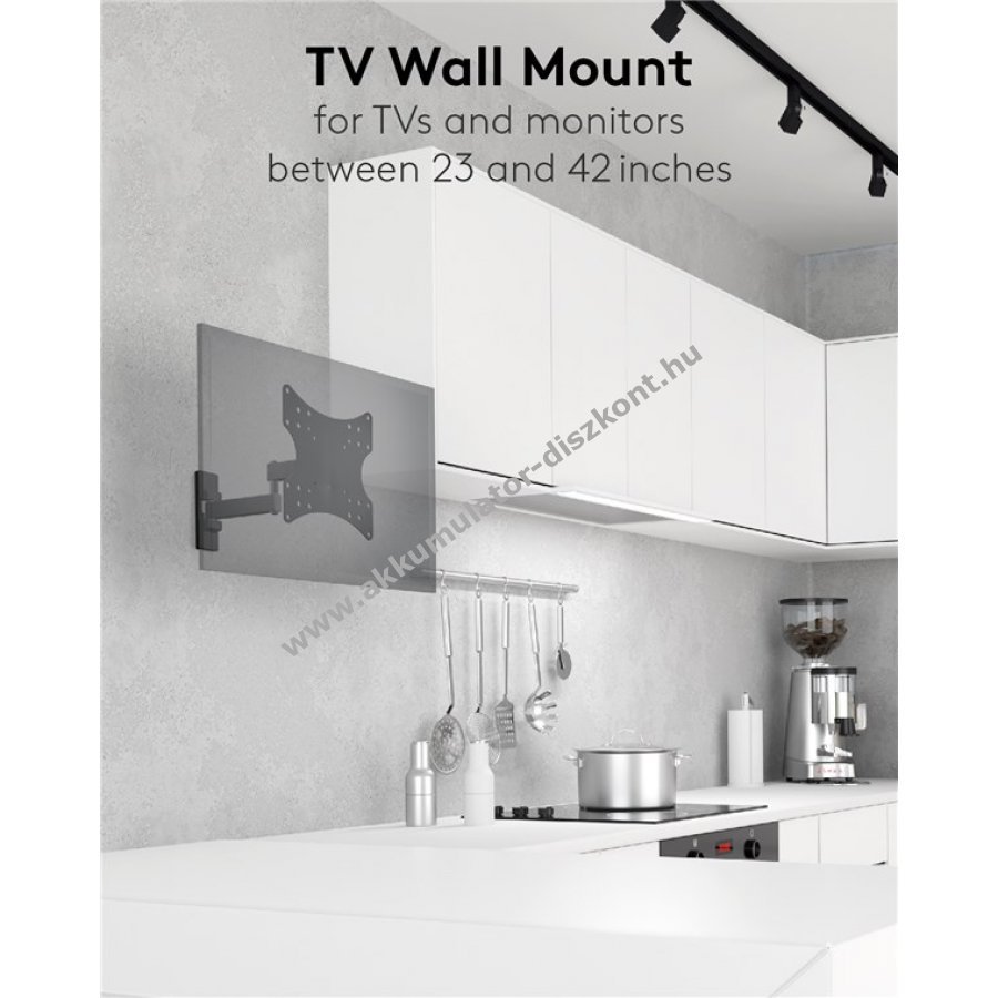 A Full Motion tartó alkalmas a legtöbb 23-42 hüvelykes (58-107 cm), legfeljebb 15 kg súlyú televízióhoz. A Full Motion maximális rugalmasságot biztosít. Döntheti, forgathatja, kinyújthatja és kiegyenlítheti, hogy a szoba bármely helyéről nézhesse tévéjét. Mindezt szerszámok nélkül. A telepítés utáni szintezés biztosítja, hogy a TV tökéletesen álljon a falon. Ideális rögzítési lehetőség kis készülékek számára fülkékben vagy fali szekrényekben, például a konyhában.