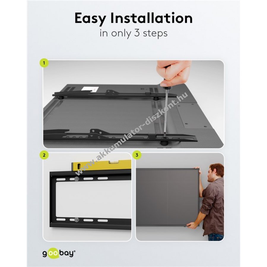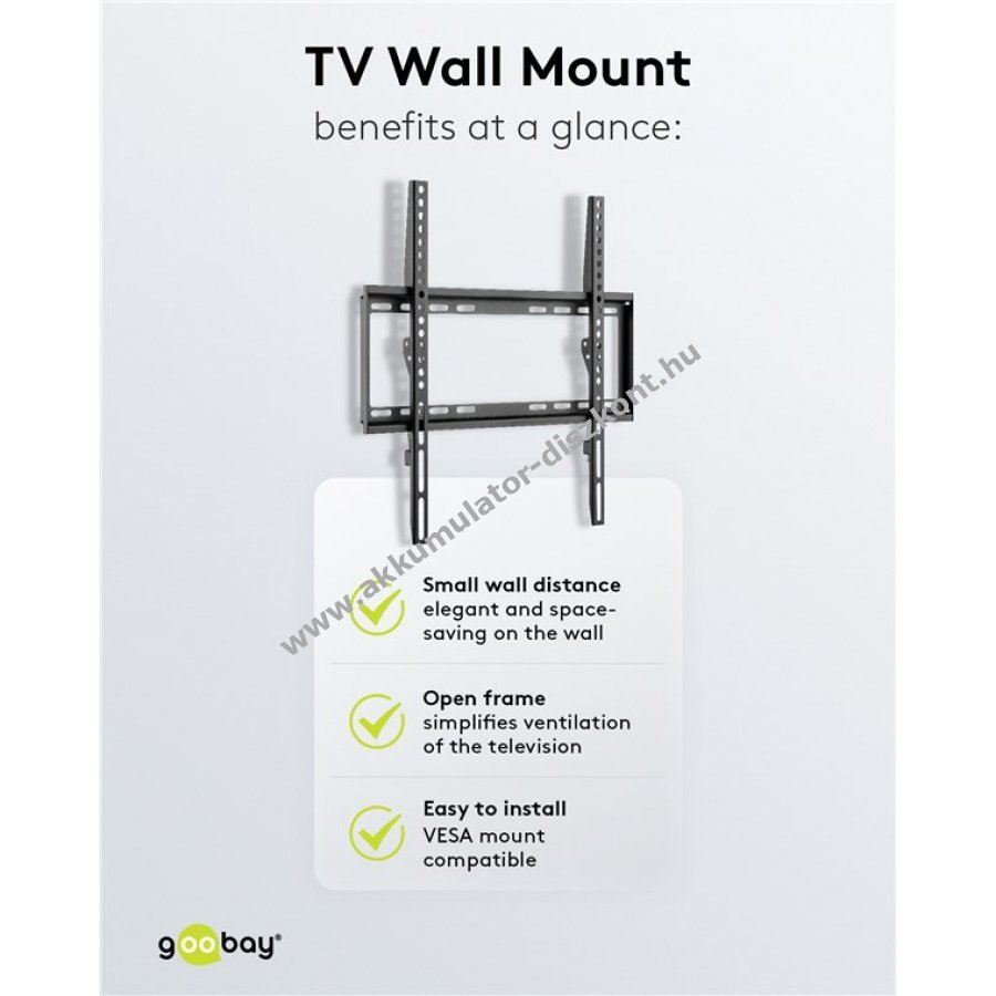 A rendkívül lapos fali tartó elegánsan laposan és helytakarékosan tartja a TV-t a falon, mindössze 20,5 mm-es. A nyitott keretszerkezet támogatja a TV szellőzését és lehetővé teszi a hátsó csatlakozók elérését.Alkalmas fali tartó a legtöbb népszerű márkájú (pl. Samsung (QLED és LED is), Sony, Philips, LG) és méretű (pl. 32 hüvelykes, 40 hüvelykes, 43 hüvelykes, 49 hüvelykes, 50 hüvelykes, 55 hüvelykes) lapos és hajlított televízióhoz. Egyszerű rögzítés és kompatibilis a 200 x 200 mm, 300 x 300 mm, 400 x 200 mm, 400 x 400 mm VESA szabványokkal.