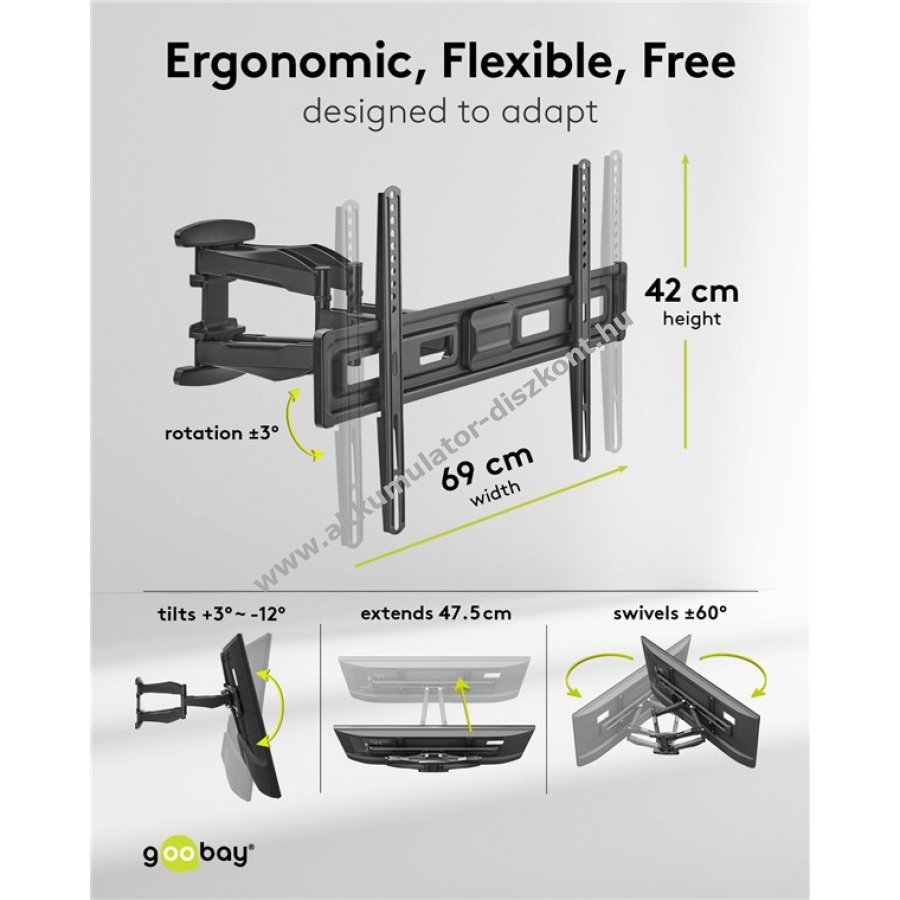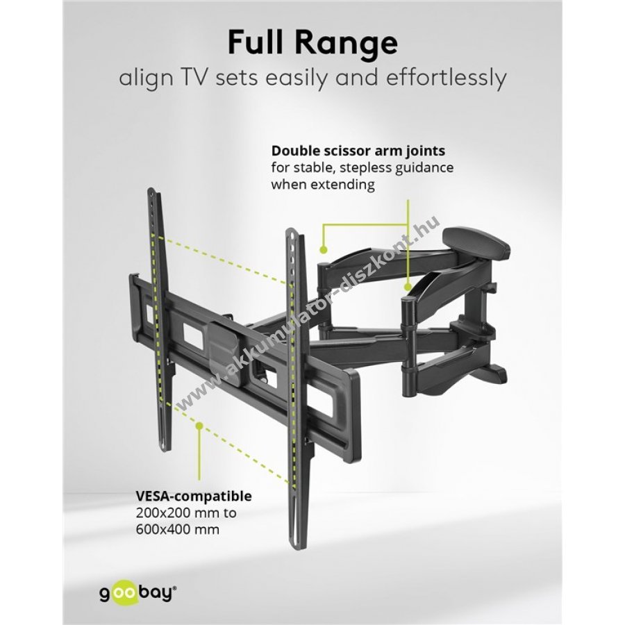 Teljes flexibilitás, forgatható, dönthető, VESA kompatibilitás 200x200 mm, 200x300 mm, 300x200 mm, 200x400 mm, 400x200 mm, 300x300 mm, 300x400 mm, 400x300 mm, 600x200 mm, 400x400 mm, 600x300 mm, 600x400 mm