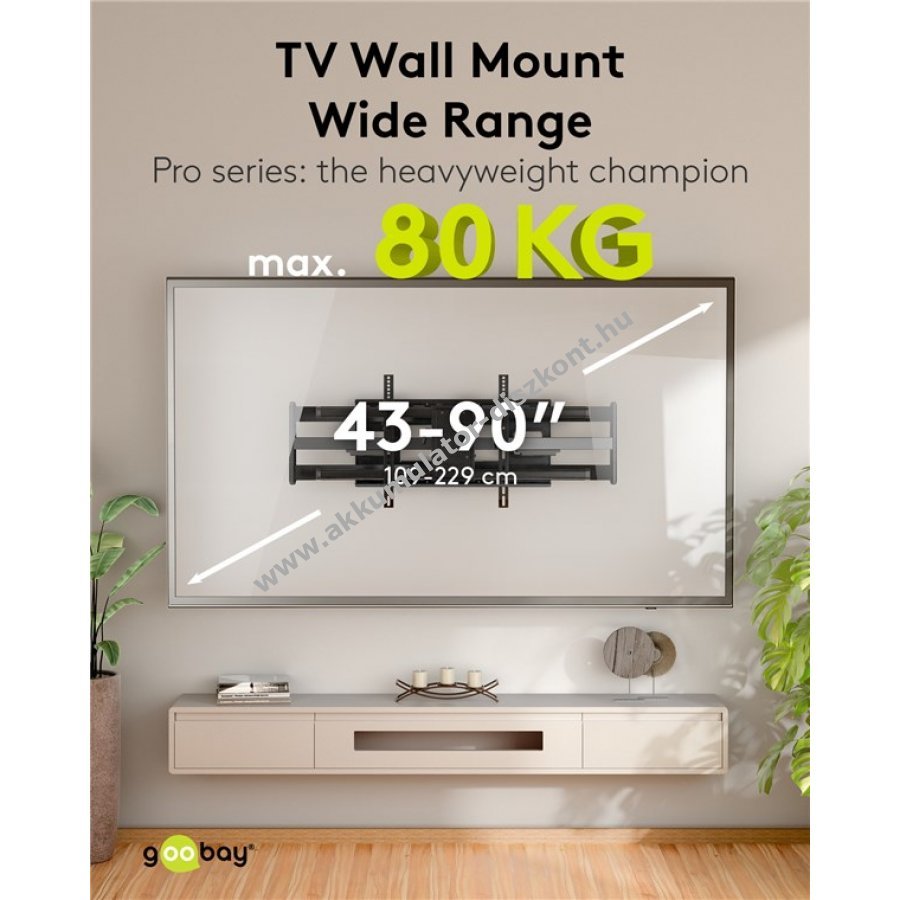 104.5 cm-ig bővíthető, teljes flexibilitás, forgatható és dönthető, VESA kompatibilitás 200x200 mm, 300x200 mm, 400x200 mm, 300x300 mm, 400x300 mm, 400x400 mm, 600x400 mm, 800x400 mm