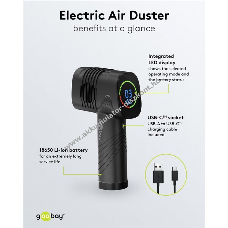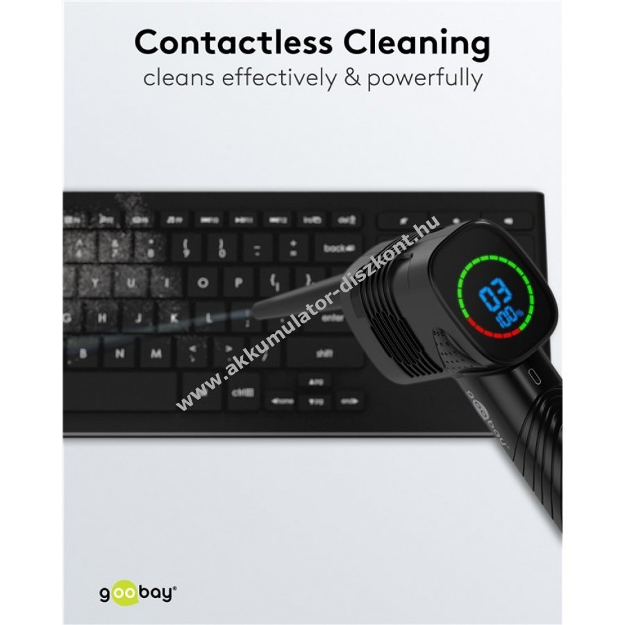 A Goobay hordozható, újratölthető porfúvó hatékony segítség érintés nélküli tisztításhoz otthon és útközben.