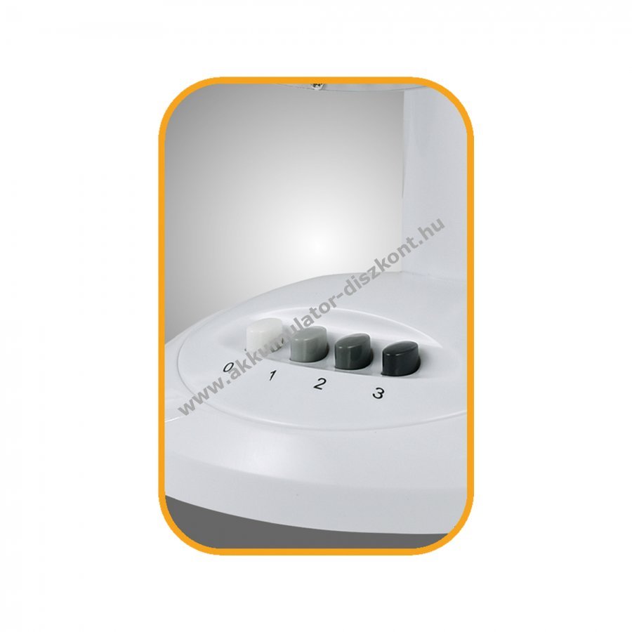 Az asztali ventilátorok kiváló szolgálatot nyújtanak hőség idején, legyen szó otthoni vagy irodai környezetről. Segítségükkel a kevésbé levegős, valamint fülledt helyiségekben is javíthatunk a komfortérzetünkön. Az asztali ventilátor 30 cm lapátátmérővel rendelkezik. A termék dizájnos fehér külseje kifejezetten illik az irodai miliőhöz. A készülék teljesítményének szabályozásakor összesen három fokozat közül választhatunk. A terméken állítható a fejdőlésszög, illetve bekapcsolhatjuk az oszcillálást, amely 90°-os szögben végez mozgást. Az eszköz mérete: 34,5 x 47 cm. A tápkábel hossza: 1,45 m. Válassza a minőségi termékeket és rendeljen webáruházunkból!