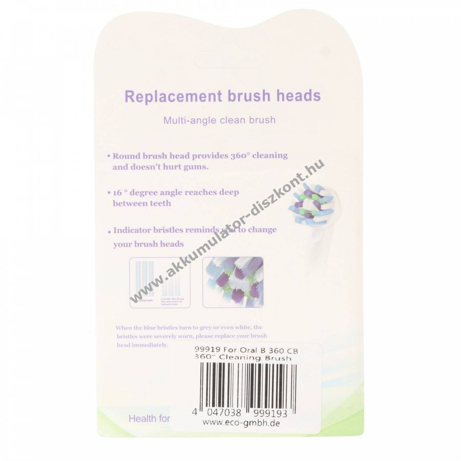 4db csomag utángyártott 360 Cleaning Brush cserélhető fogkefefej Oral-B elektromos fogkefékhez. Nem eredeti termék.