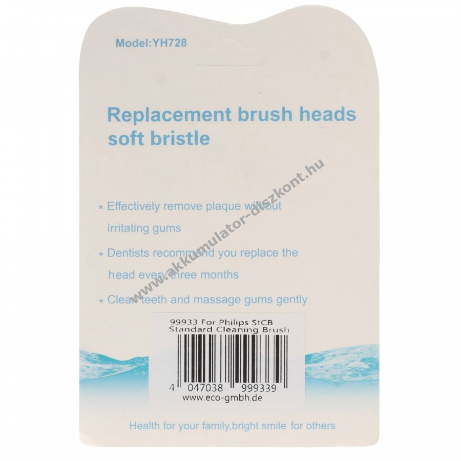 Philips kompatibilis Standard Cleaning Brush pótfejek hatékony és kíméletes tisztítást biztosítanak Philips HX3, HX6, HX8 és HX9 sorozatú elektromos fogkefékhez.