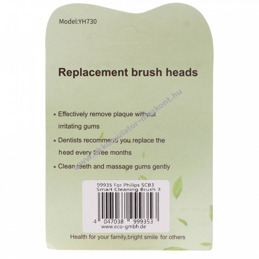 4db Smart Cleaning Brush 3 csere elektromos fogkefefej Philips HX3, HX6, HX8, HX9 széria