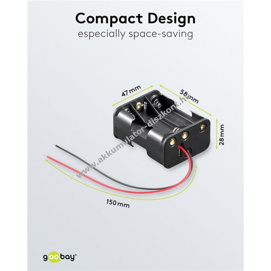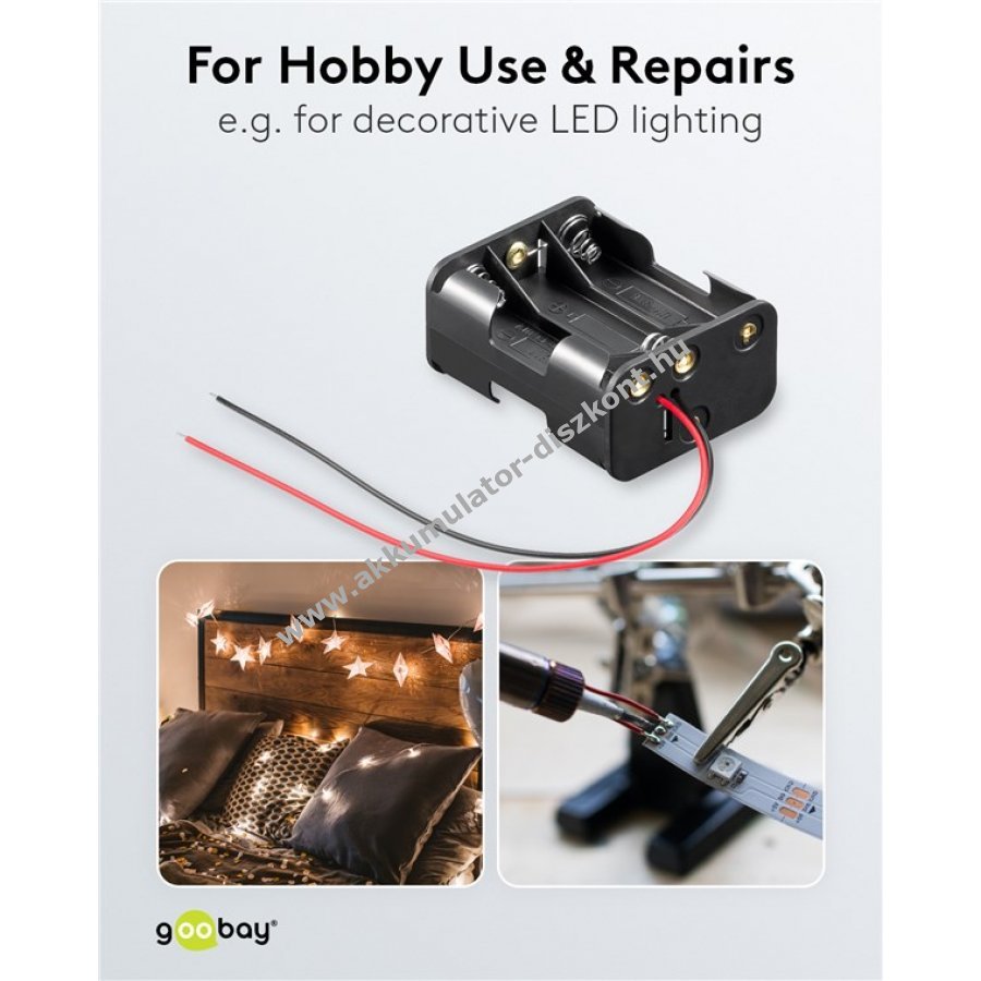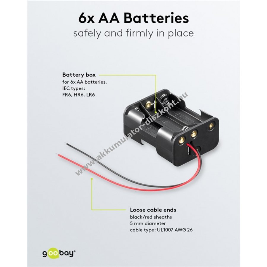 Elemtartó 6db Mignon,AA, FR6, HR6, LR6 ceruza elemhez, akkuhoz kábeles csatlakozóval Üzemi hőmérséklet -20C és +50C között