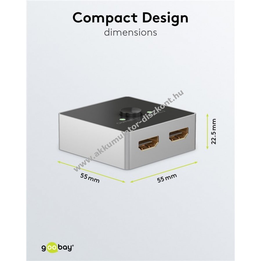 A váltó 1 HDMI bemenetet továbbít 2 HDMI kijelzőre vagy fordítva 2 bemenetet egy kijelzőre.
