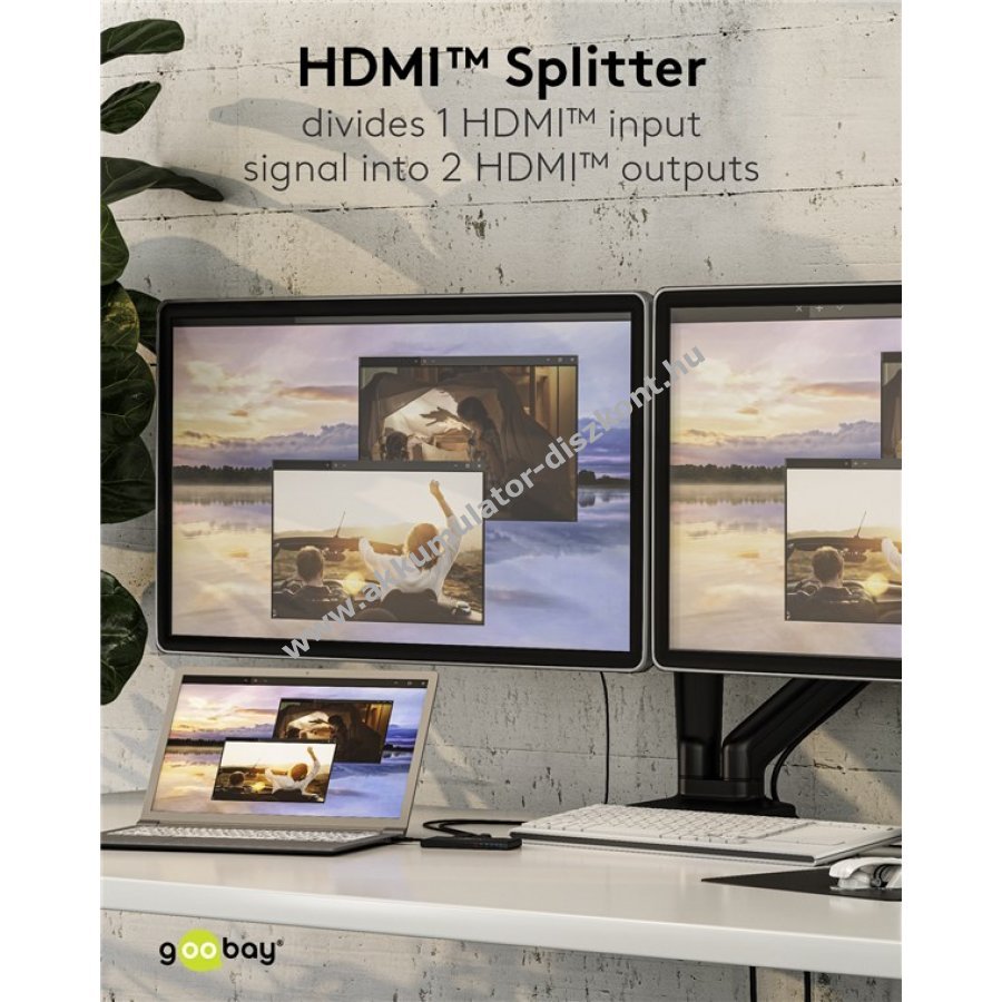 HDMI-splitter egy bemenet és két kimenet számára televízióhoz monitorhoz vagy projektorhoz.