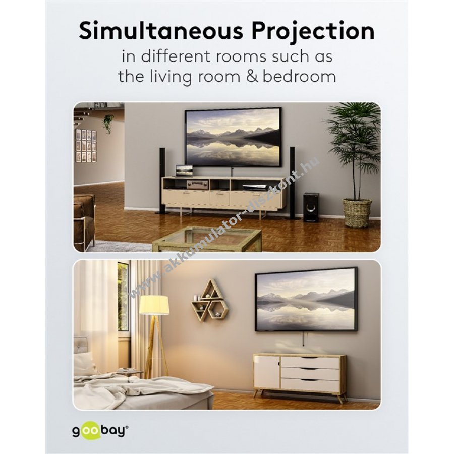 Audio és videó jeleket párhuzamosan továbbít a csatlakoztatott eszközökre például több helyiségben történő egyidejű vetítéshez.