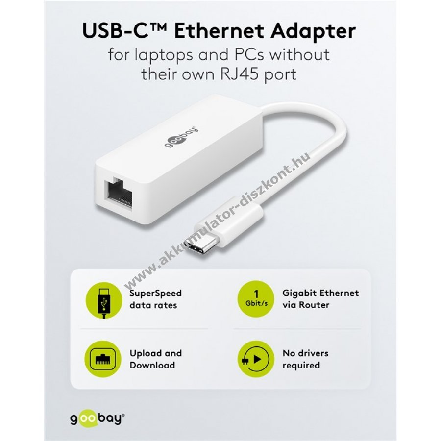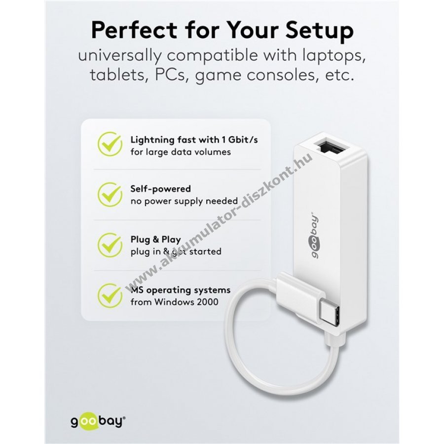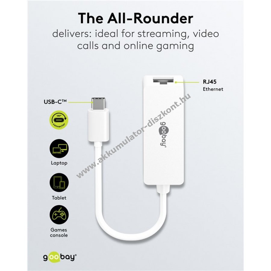 Kábeles internetkapcsolat stabilabb a WLAN-nál de a laptop nem rendelkezik Ethernet porttal A Goobay LAN USB-C adapter egyszerűen csatlakoztatja a számítógépet hálózati kábelhez