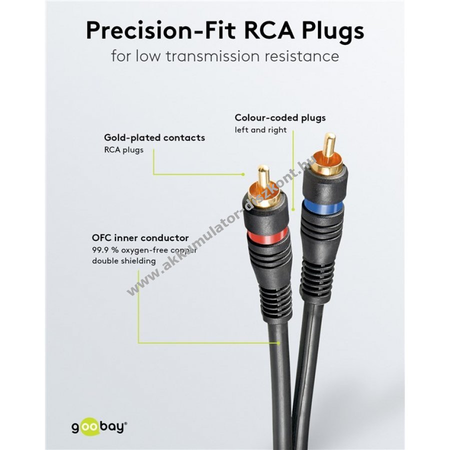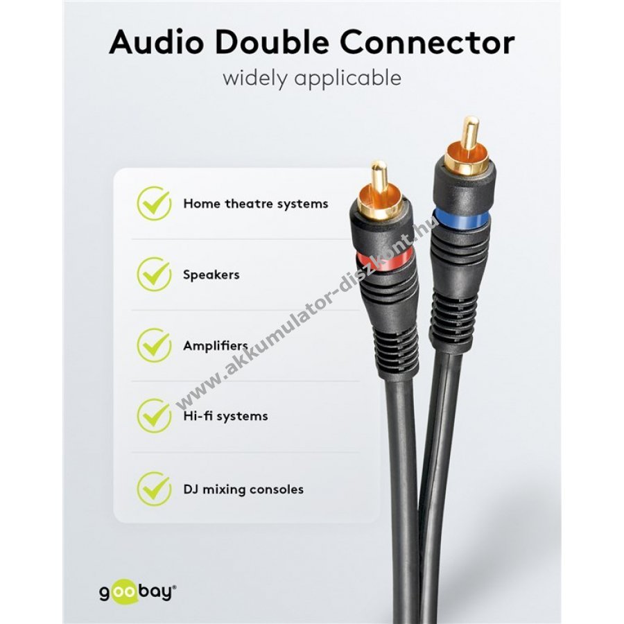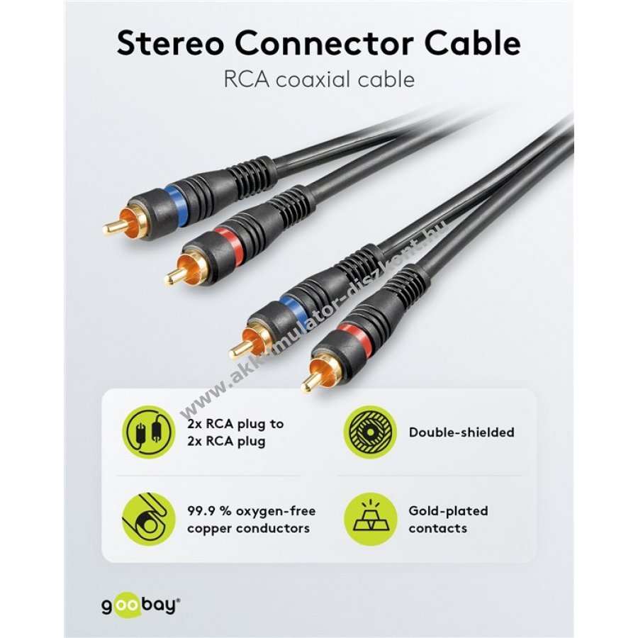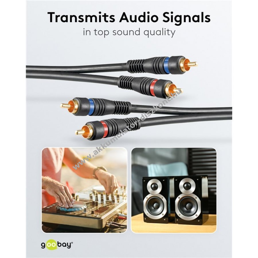 Goobay minőségi audiokábel sztereó jelátvitelhez. Kiváló hangzás otthoni mozizáshoz és zenei alkalmazásokhoz.