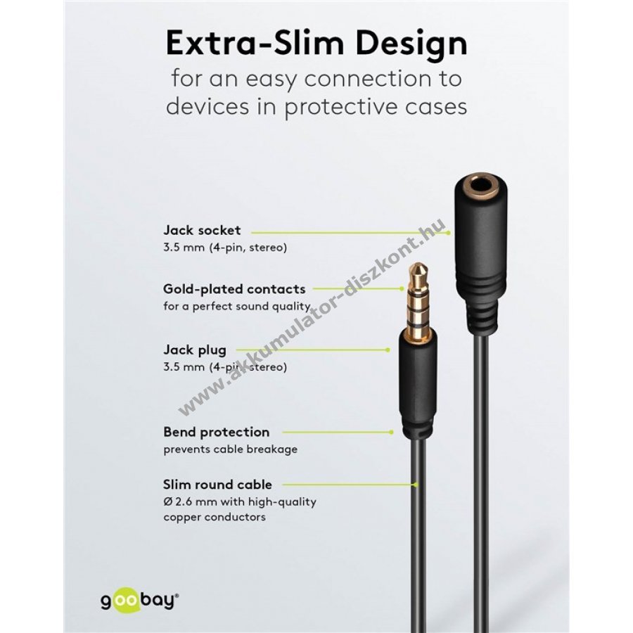 Goobay 1m 4-pólusú 3,5mm AUX sztereó audio hosszabbító kábel