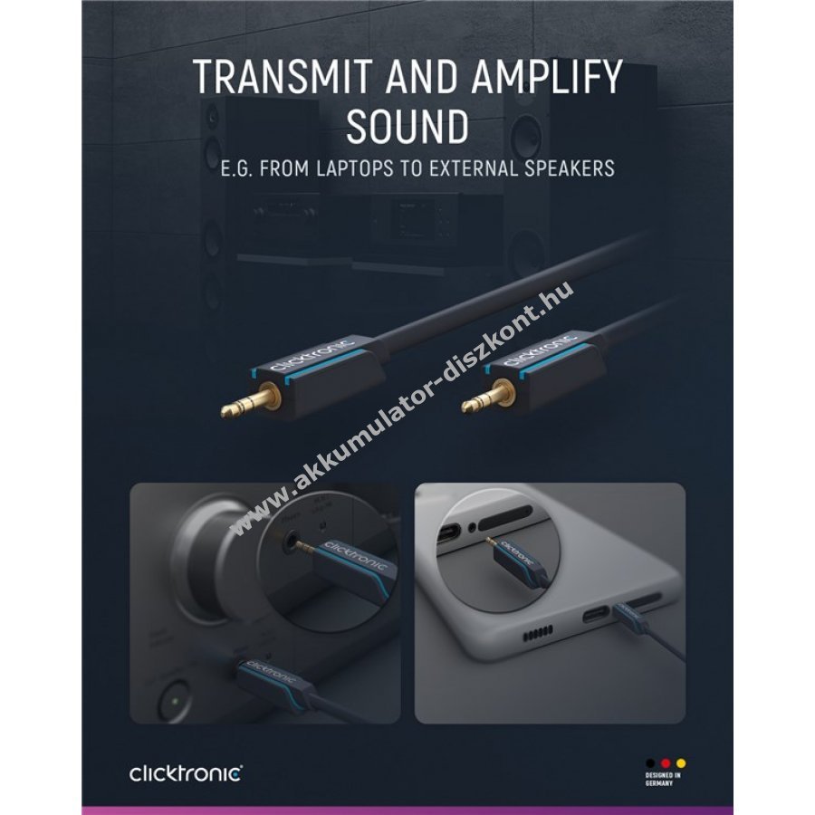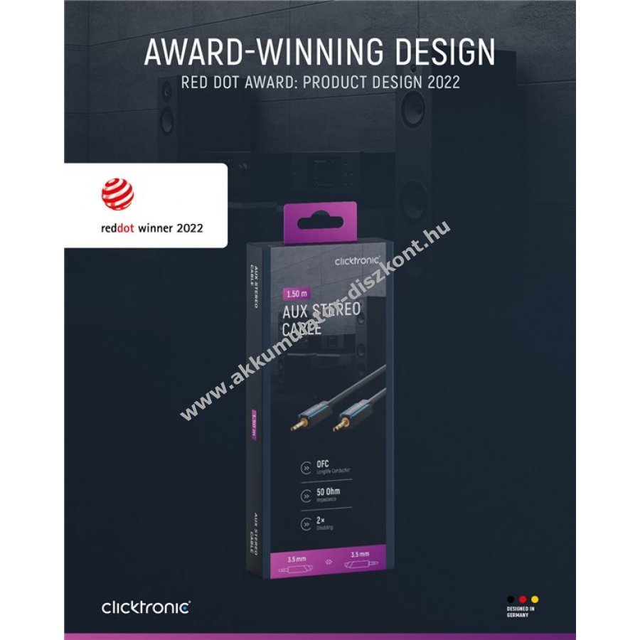 Clicktronic prémium minőségű 3,5 mm-es AUX kábel tartós és stabil kialakítással 10 év garanciával.